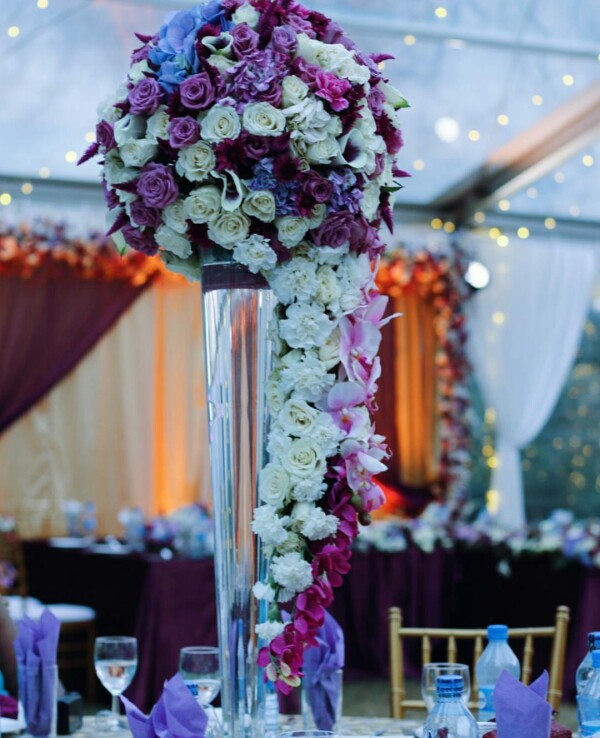 The glamorous purple theme wedding was attended by 200 guests.