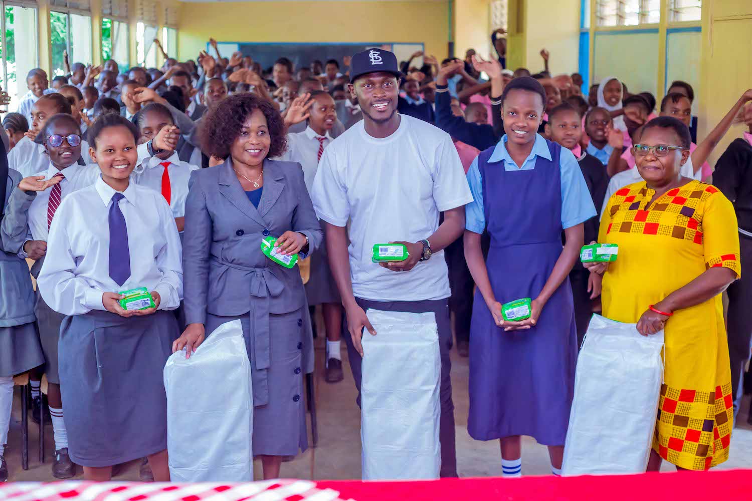 Along with his partners, King Kaka distributed 732 packs of sanitary towels as donated by Kitengela International School. This means that 180 students will be able to remain in class for a term. Other partners-Better4Kenya, had talks with the girls on dealing with menstruation hygiene challenges while King Kaka encouraged the young lads by telling his story and thus inspiring the boys to reach their highest potential.