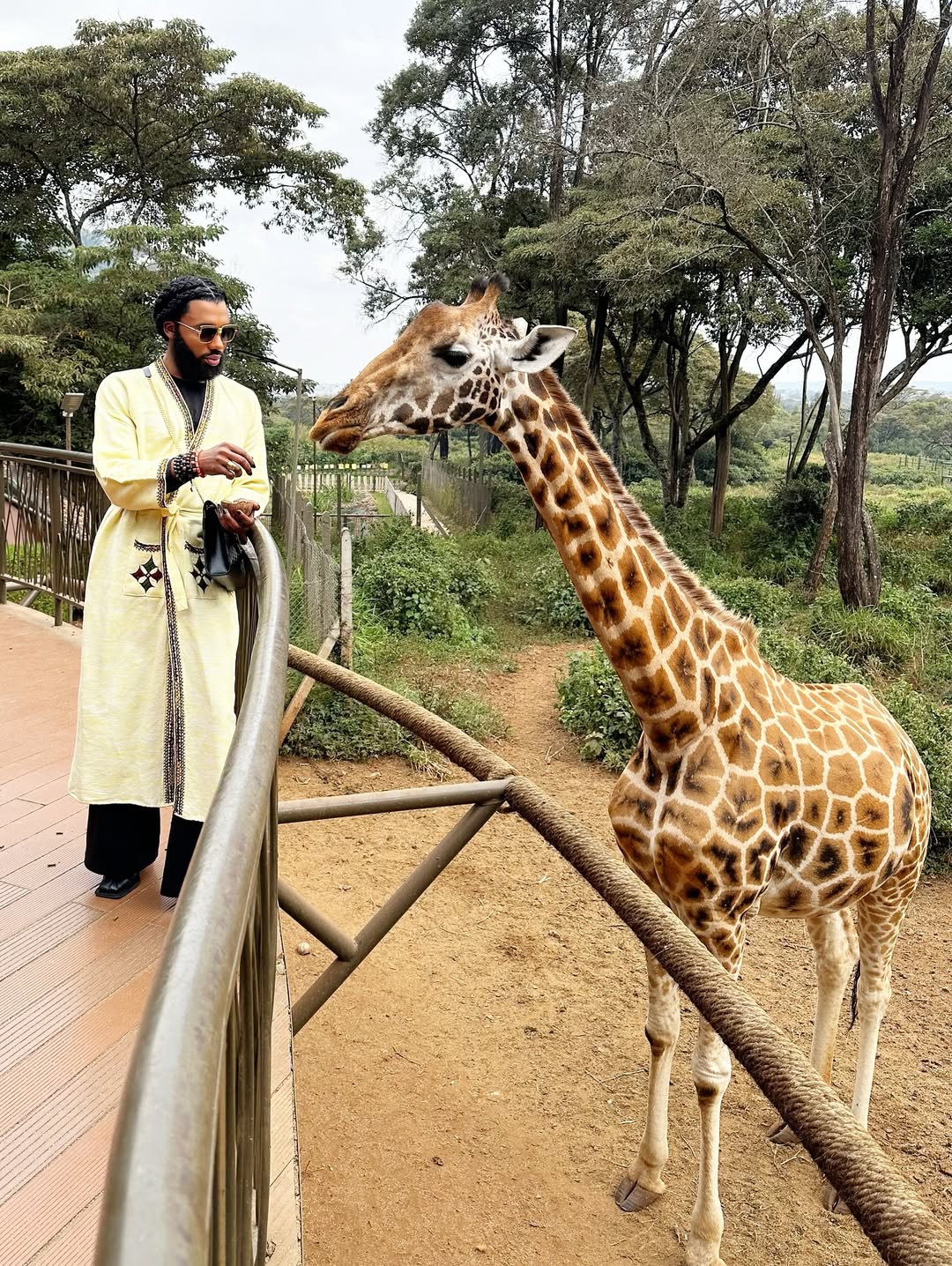 The Nigerian style king shared his experience at one of Kenya’s most iconic landmarks, “I visited my tall friends at the Giraffe Center in Kenya 👌🏾majestic souls that walk with grace, see far beyond the horizon, and remind us to keep our heads high while staying grounded.”