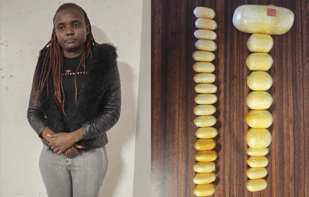 The suspect, identified as Muli Ayan Ndunge, 34, was arrested upon her arrival from Addis Ababa, Ethiopia, following intelligence received by the unit. “Our officers, acting on precise intelligence, discreetly monitored the suspect after she landed. She was escorted to our facilities for further processing, where the investigation unfolded,” said a spokesperson for the unit.