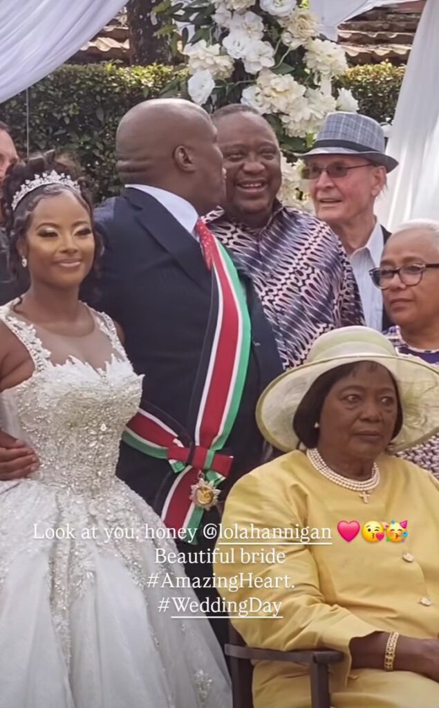 The private event was attended by close family and friends, with notable guests including Former president Uhuru Kenyatta, former first ladies Margaret Kenyatta and Mama Ngina Kenyatta, Keroche Breweries heiress Anerlisa Muigai and her husband. This union celebrates the growing family of Lola and Jomo. The couple recently welcomed their third child together.