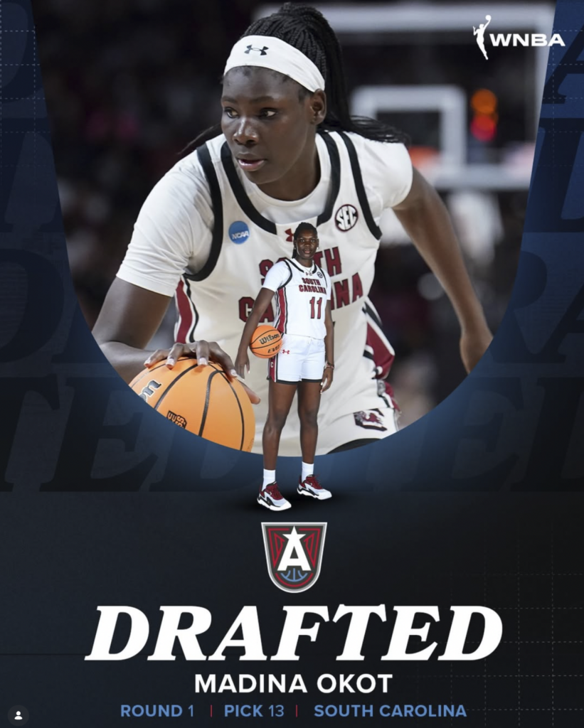 Okot’s selection by the Dream highlights her quick rise in basketball, a sport she took up only a few years ago. Before joining South Carolina, Okot spent the 2024–25 season at Mississippi State, where she put up 11.3 points and 9.6 rebounds per game.